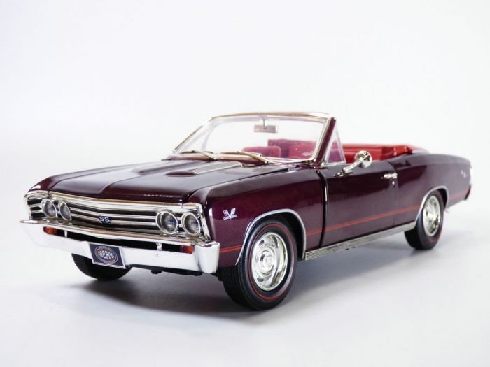 CHEVROLET CHEVELLE SS 396 cabriolet de 1967 en couleur bordeaux à l'échelle 1/18